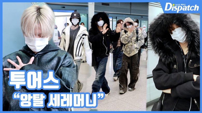 이날 투어스는 꾸밈없는 스타일에도 청량한 매력을 발산하며 입국장을 나섰다. 지훈과 영재는 취재진의 수상 축하에 귀여운 앙탈 세레머니로 화답해 미소 짓게 만들었다.