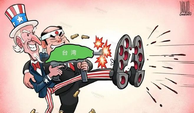 중국이 가장 견제하는 '대만 유사시 개입'과 관련한 중국 한 매체의 만평. 한국이 13일 열릴 한일 정상회담에서 대만 문제와 관련, 만에 하나 미일의 주장에 동조할 경우 상황은 심각해질 수 있다./차이나데일리. |