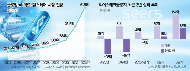 11일 금융정보업체 에프앤가이드에 따르면 웨어러블 AI 진단 모니터링 기업 씨어스테크놀로지(458870)는 지난해 매출 469억 원, 영업이익 147억 원을 기록할 것으로 예상된다. 실제로 연간 흑자를 낸다면 상장 의료 AI 기업들 중 첫 사례가 된다. 지난해 3분기 흑자 전환에 성공한 뷰노(338220)는 연간 매출 380억 원, 영업손실 28억 원의 성적표를 받아들 것으로 예상된다. 연간 흑자 달성 가능성은 낮지만 영업손실 규모를 전년 대비 80% 줄였다.