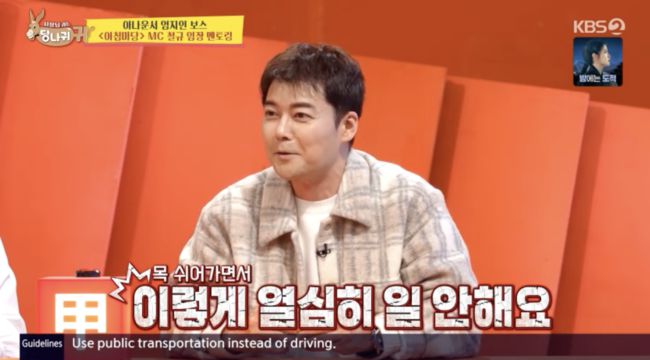 11일 방송된 KBS2 ‘사장님 귀는 당나귀 귀’에서는 엄지인 보스가 KBS ’아침마당’을 함께 진행하는 박철규 아나운서의 가정 방문 멘토링에 나섰다.