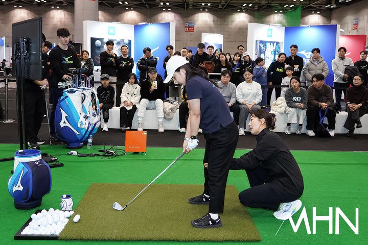 (MHN 고양, 박태성 기자) 11일 경기 고양에 위치한 킨텍스 제2전시장에서 '미즈노 페스타 2026' 이 열렸다. 이날 골프부스에서는 박송이 원데이클래스 원포인트 레슨이 진행됐다. 박송이가 원포인트 레슨을 진행하고 있다. <저작권자 Copyright ⓒ MHN / 엠에이치앤 무단전재 및 재배포 금지>이 기사의 카테고리는 언론사의 분류를 따릅니다.0공유하기