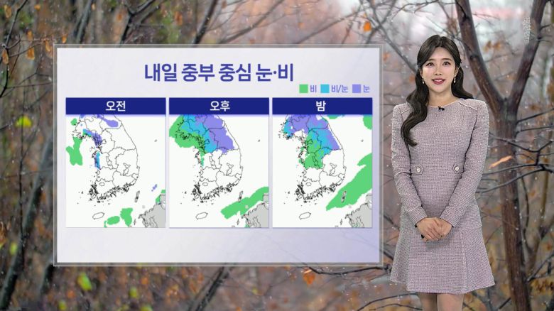 내일은 중부 중심으로 눈과 비가 내리겠습니다.