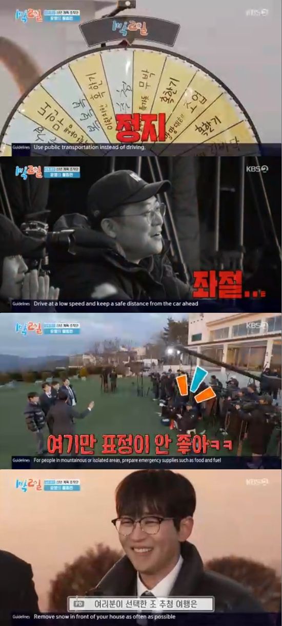 (엑스포츠뉴스 원민순 기자) '1박 2일' 멤버들이 4%의 확률을 뚫고 조추첨 여행을 성사시켰다.