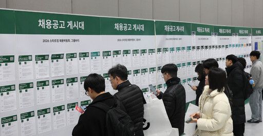 11일 서울 강남구 코엑스에서 열린 ‘2026 스타트업 채용박람회’에서 참가자들이 기업의 채용공고를 보고 있다. 정부는 지난 9일 발표한 ‘2026년 경제성장전략’을 통해 올해 취업자 수가 16만명 늘어날 것으로 전망했다. 이는 작년 19만명보다 3만명 감소한 수치로, 생산연령인구 감소와 고령화 등 인구구조 변화의 영향이라는 설명이다. 이제원 선임기자 ⓒ 세상을 보는 눈, 세계일보이 기사의 카테고리는 언론사의 분류를 따릅니다.0공유하기