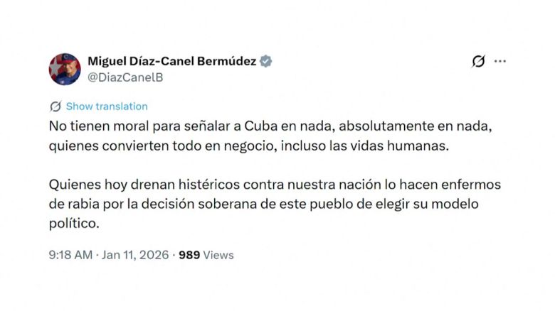 미겔 디아스카넬 쿠바 대통령은 자신의 SNS에 올린 글에서 트럼프 대통령을 포함한 미국 정부 관료를 겨냥해 "쿠바를 향해 히스테리적으로 비난을 퍼붓는 환자들"이라고 썼습니다.