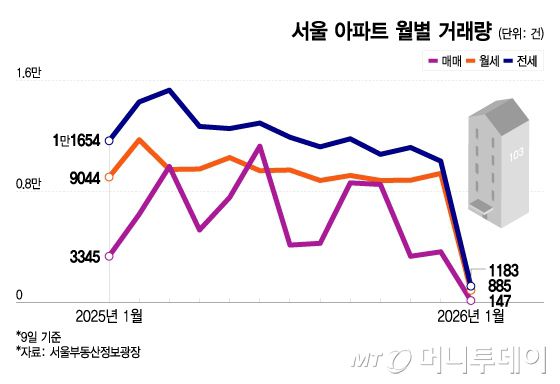 부동산업계 관계자는 "현재 서울 시장 역시 거래량 감소라는 숫자 이면에 응축된 매수압력이 쌓이고 있다"며 "서울 아파트 시장을 거래량만 놓고 보면 냉각국면처럼 보이지만 실제로는 매수수요가 사라지지 않은 채 제도 속에 갇혀 있는 상태"라고 설명했다.
