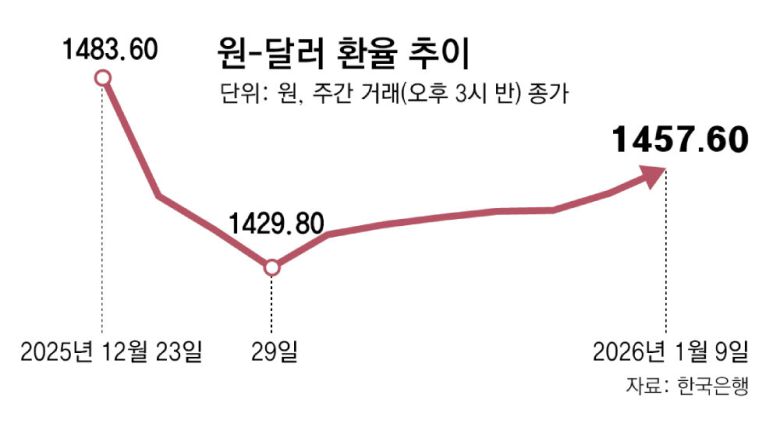 외환 당국의 강도 높은 개입에도 원-달러 환율이 다시 오름세를 보이는 건 연초 미국 주식에 투자하려는 국내 개인투자자의 대규모 달러 환전 수요가 영향을 미친 것으로 분석된다. 대외적으로는 베네수엘라 사태 등 지정학적 위기가 고조되는 상황에서 나타나는 강(强)달러 현상도 원화 가치 하락을 부추기고 있다.