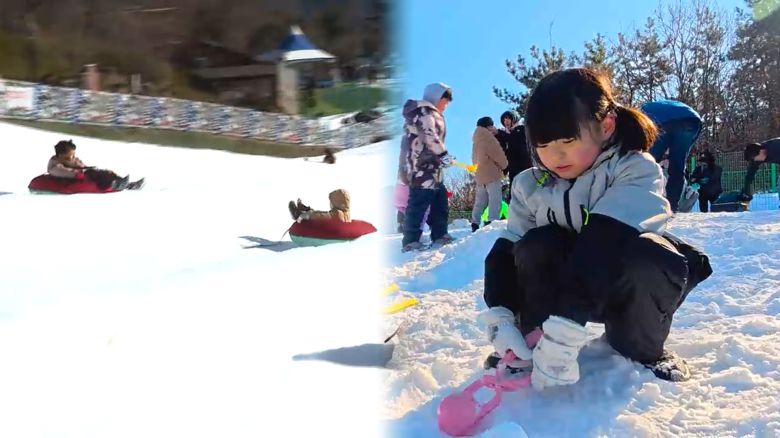 눈을 실컷 즐길 수 있는 썰매장은 칼바람이 부는 맹추위에도 인기입니다.