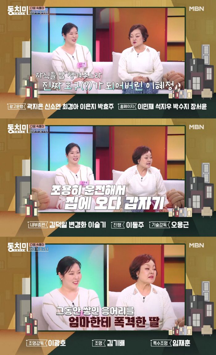 그러자 이혜정은 "(딸이) 조용히 운전하고 오다가 갑자기 '엄마는 오빠밖에 모른다'며 폭격했다"며 그동안 쌓인 감정을 터뜨린 딸에게 당황했던 일을 폭로했다.