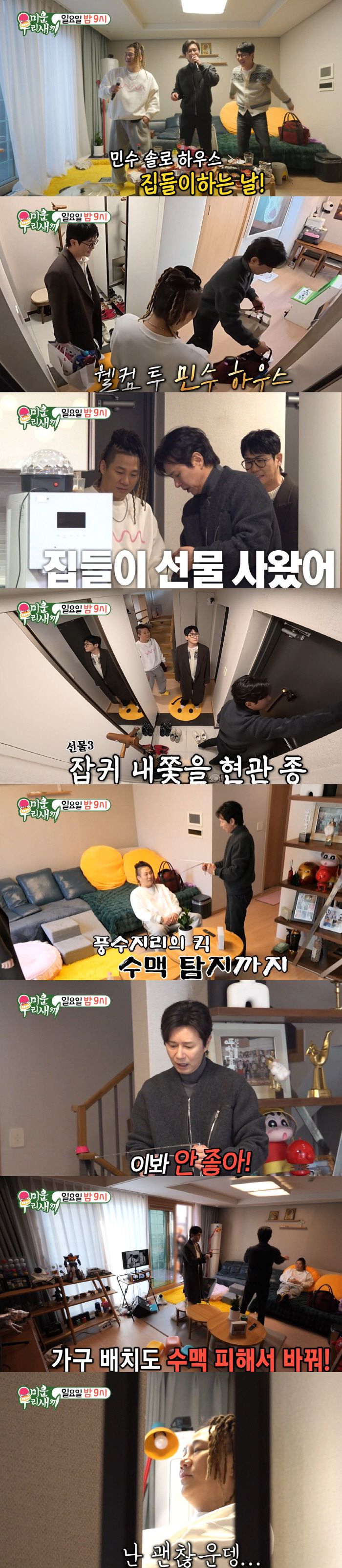 이날 방송에서 윤민수는 배우 김민종과 가수 영탁을 집으로 초대해 집들이를 진행했다.