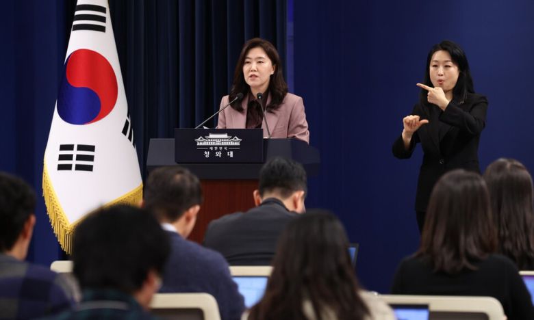 강유정 대변인이 12일 청와대 춘추관에서 브리핑하고 있다. 청와대사진기자단