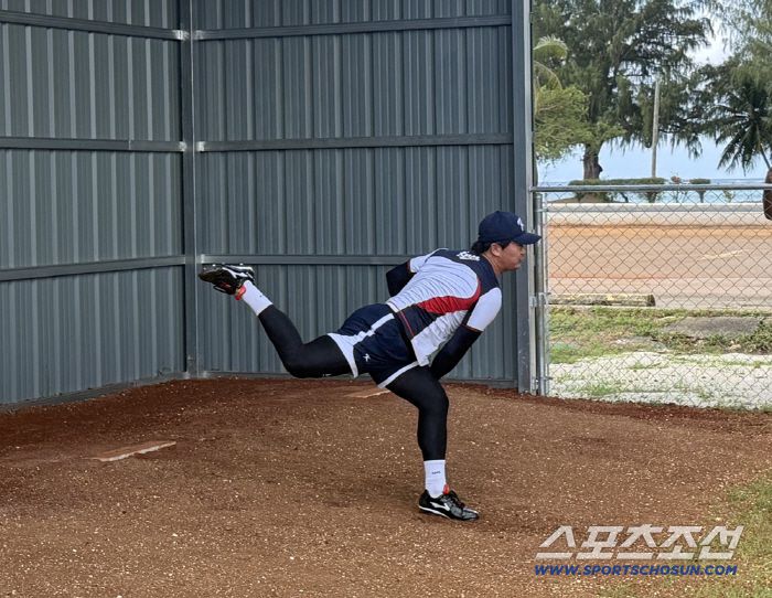 '해외파' 고우석(디트로이트)이 빠르게 불펜 피칭에 돌입했다. 예년보다 훨씬 빠르게 몸을 만들어온 고우석은 12일 미국령 북마리아나제도 사이판 올레아이구장에 차린 야구 대표팀 1차 스프링캠프에서 불펜 피칭을 소화했다. 대표팀이 지난 10일부터 공식 훈련을 시작한 이후, 이날 처음 가진 불펜 피칭은 고우석과 최고참 노경은, 두명의 투수가 소화했다.