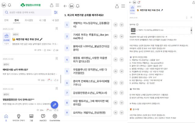 영림원소프트랩은 이번 프로그램을 업무 특성상 부서 간·구성원 간 소통이 쉽지 않은 환경에서도 누구나 부담 없이 참여할 수 있도록 참여형 구조로 기획했다고 설명했다. 행사 공지부터 참가자 모집, 사전 투표까지 전 과정을 에버레스크(EverAsk)로 운영하면서 구성원들이 시간과 장소 제약 없이 프로그램 정보를 확인하고 참여 의사를 표시할 수 있도록 했다는 것이다.