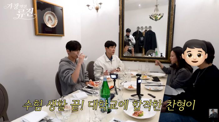 그때 류진은 "찬형아, 식사한 이유 중에 가장 큰 이유가 뭔지 아냐. 크리스마스 뭐 그런 것도 있긴 하지만 고3이었지 않나. 지금 결실을 맺었지 않나. 그거 너무 대견하다"며 대학교에 합격한 찬형 군을 축하했다.