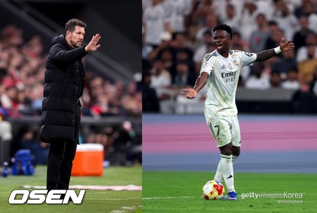[OSEN=강필주 기자] 아틀레티코 마드리드(ATM)를 이끄는 디에고 시메오네(56) 감독이 비니시우스 주니오르(25, 레알 마드리드)에게 사과의 뜻을 전했다. 다만 사과 이후 남긴 발언의 뉘앙스는 도발인지, 뒷끝인지 해석이 엇갈리고 있다.