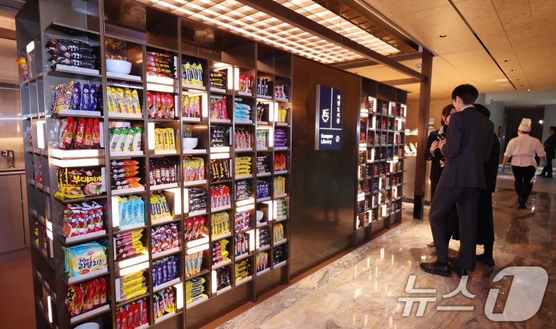 (인천공항=뉴스1) 박지혜 기자 = 13일 인천국제공항 제2여객터미널 리뉴얼을 마친 대한항공 프레스티지 동편 좌측 라운지에서 관계자가 라면 라이브러리를 이용하고 있다. 대한항공 프레스티지 동편 좌측 라운지는 체험형 프로그램과 엔터테인먼트 요소를 더한 것이 특징이다. 쿠킹 스튜디오(L’atelier), 아케이드 룸(Arcade Room), 라면 라이브러리(Ramyeon Library)를 마련해 다른 라운지와 차별화했다. 대한항공 프레스티지 동편 좌측 라운지는 인천국제공항 제2여객터미널 253번 탑승구 맞은편 4층에 위치하며, 오는 14일 오전 6시에 정식 오픈한다. 2026.1.13/뉴스1