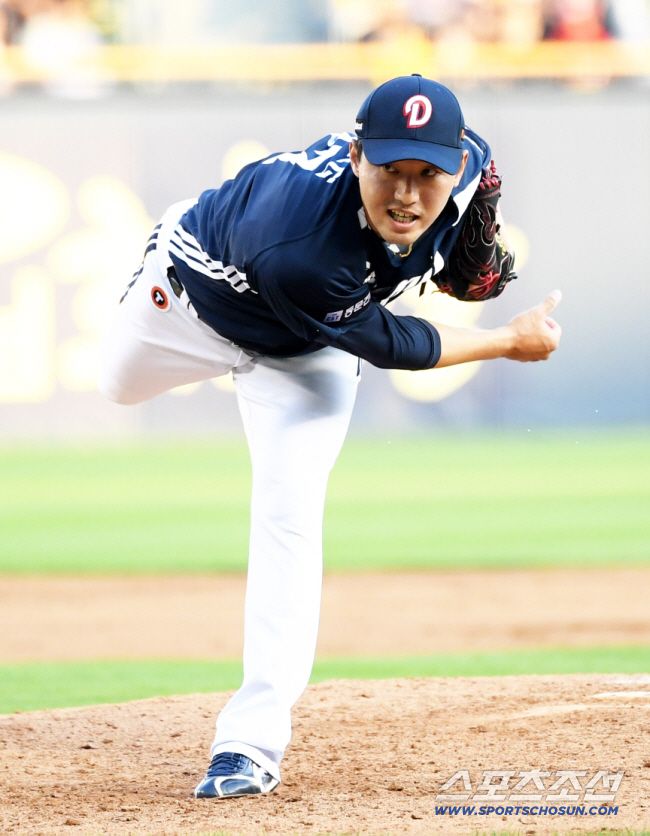 23일 잠실야구장에서 열린 KT와 두산의 경기, 두산 홍건희가 역투하고 있다. 잠실=허상욱 기자wook@sportschosun.com/2025.08.23/