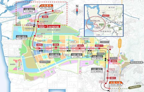 시는 청라 연장선 전체 1∼6공구 중 1∼5공구(001·002·002-1·003·004·005정거장)는 내년 하반기 우선 개통하고, 당초 계획에 추가된 005-1정거장(가칭 돔구장역)과 6공구(006정거장)는 2029년 개통할 계획이다.