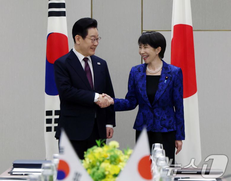 이재명 대통령과 다카이치 사나에 일본 총리가 13일 일본 나라현 회담장에서 열린 확대 회담에 앞서 악수하고 있다. 2026.1.13/뉴스1 ⓒ News1 이재명 기자