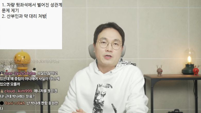 그는 "매니저는 두 가지 사안에 대해 제보했다. 산부인과 약 대리 처방과 차량 뒷자리에서 벌어진 성관계 문제였다. 매니저가 '어떤 걸 고르시겠냐'고 하길래 '물론 문제 제기해 주신 사항 중요한 문제다. 그러나 자칫 사적 폭로로 비칠 수 있다. 공적인 문제 제기로 비치는 것이 중요한 사안'이라고 말했다. 그래서 진흙탕 폭로보다 사회적 약자인 매니저들의 목소리에 귀를 기울이자고 했다"고 밝혔다.