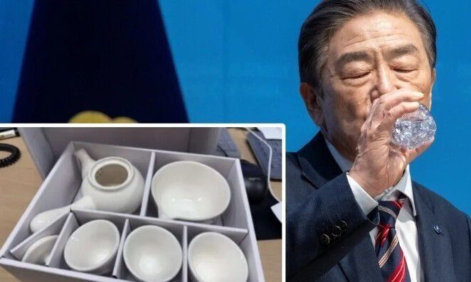 김형석 독립기념관장과 독립기념관이 독립기념관 홍보기념품으로 제작한 다기세트(작은 사진). 국가보훈부가 13일 발표한 특정감사 결과를 보면, 김 관장은 1307개(1321만원 어치)의 홍보기념품을 수령하면서 사용 내역을 ‘관장실 방문 내빈에게 순차적으로 제공’으로만 기재했다. 보훈부는 “기념품이 목적에 맞게 사용했는지 확인할 수 없었다”며 “독립기념관장은 사적 친소관계가 있는 지인에게만 기념품을 제공하는 등의 특혜를 제공해 국민 신뢰를 저하시켰다”고 밝혔다. 연합뉴스, 신장식 조국혁신당 의원실 제공