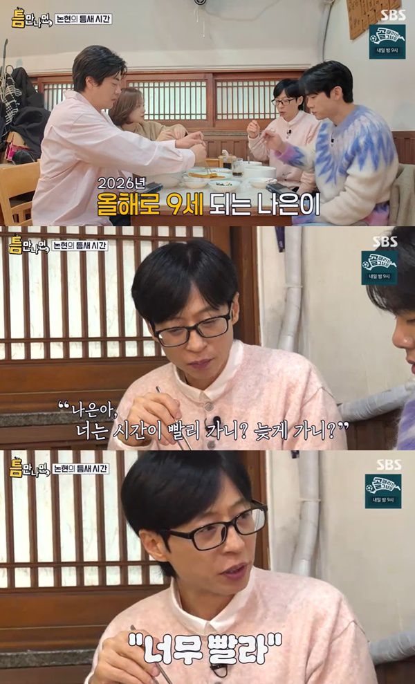 이어 "우리 둘째 딸이 9살이 된다. 궁금해서 물어봤다. 딸 나은이한테 너는 시간이 빨리 가니 늦게 가니라고 묻자 '너무 빨라'라더라"고 말하며 놀라워했다.