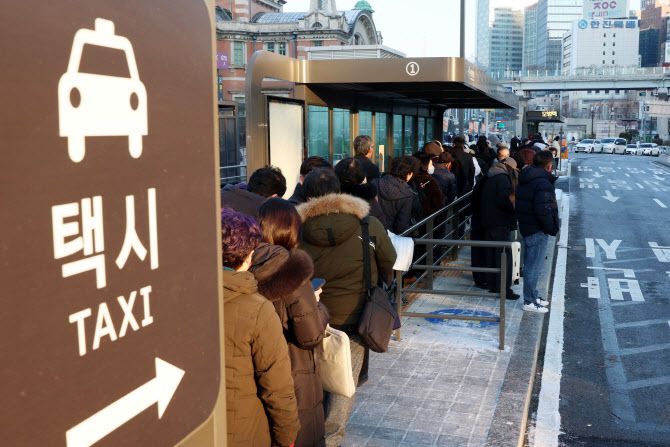 서울 시내버스노조가 총파업에 돌입한 13일 오전 서울 중구 서울역 택시승강장에서 시민들이 택시를 기다리고 있다.(사진=뉴시스)