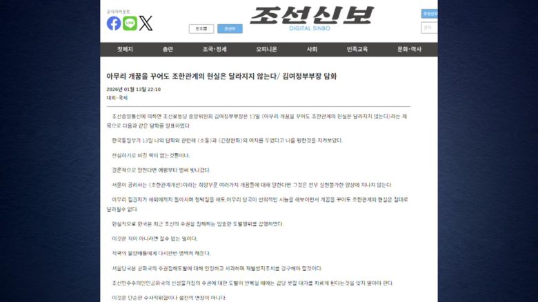 이어 아무리 집권자가 해외를 돌며 청탁을 해도, 아무리 선의적인 시늉을 하며 개꿈을 꿔도 남북관계 현실은 절대 달라질 수 없다고 덧붙였습니다.