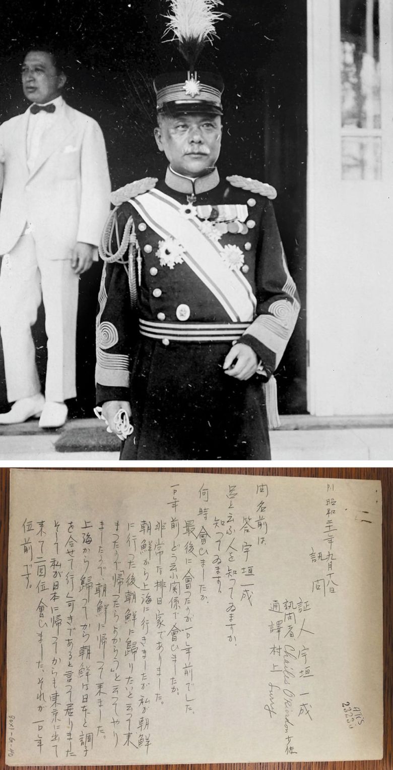 여운형은 해방 전 대표적인 ‘반일’ 인사로 알려진 것과 달리 조선총독부와 정치·외교를 둘러싸고 접촉을 이어간 정황이 사료로 확인된다. 조선 총독을 지낸 우가키 가즈시게(위 사진)는 상하이에 있던 여운형이 조선에 귀국하면 일본과 협력하겠다고 밝혔고 수차례 만났다고 미군정 심문에서 진술했다. 현재 미국 하버드 옌칭도서관에 소장되어 있는 심문 조사서(아래 사진)에서 그 내용을 확인할 수 있다. /게티이미지코리아·문유미 제공 |