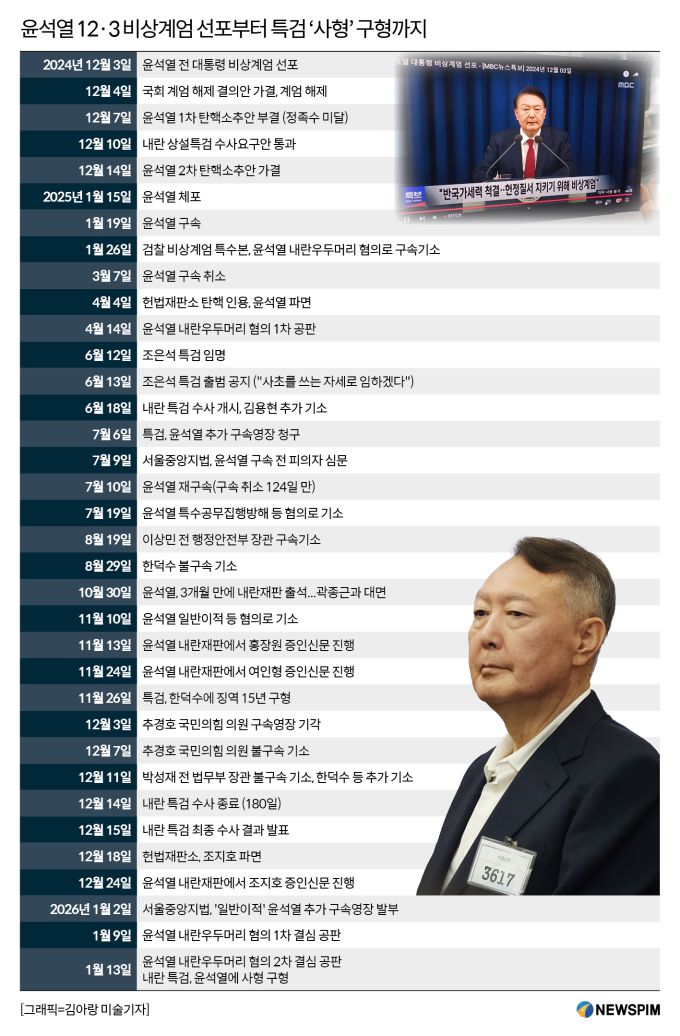 윤 전 대통령의 내란 혐의 국면은 2024년 12월 3일 밤 비상계엄 선포와 함께 시작됐다. 국회가 즉각 계엄 해제 결의안을 가결하며 계엄은 해제됐으나, 당시 야당은 즉각 대통령 탄핵 절차에 착수했다. 같은 달 10일 내란 상설특검 수사요구안이 통과됐고, 14일 국회에서 2차 탄핵소추안이 가결되며 윤 전 대통령의 직무가 정지됐다.