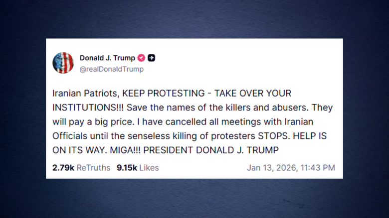 도널드 트럼프 미국 대통령은 이란에서 반정부 시위대를 향한 살상이 멈출 때까지 이란 당국자들과의 모든 회담을 취소했다고 밝혔습니다.