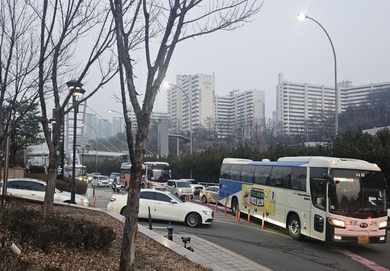 서울 서초구 반포동 서울고속버스터미널 앞 사평대로에 고속버스와 승용차가 지나가고 있다. |