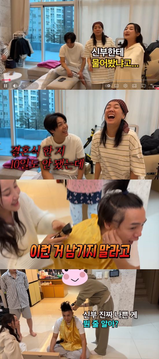 이날 고은아와 미르는 "지금 12월 31일이다. 결혼식 한지 10일도 안 됐다"면서 미르의 삭발 계획을 알렸다. 카메라를 들고 있는 미르의 아내 역시 손으로 오케이를 하며 남편의 삭발을 허락했다.
