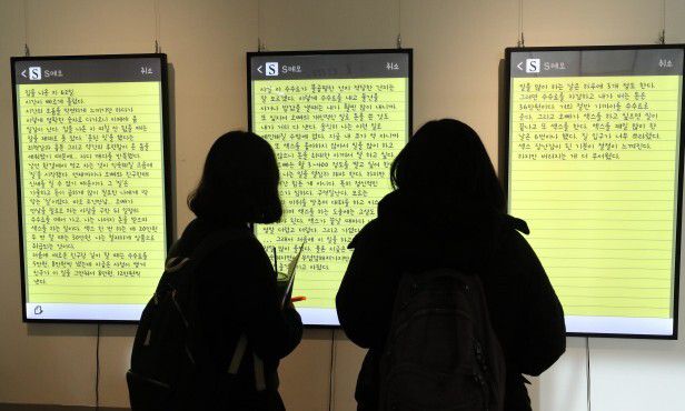 십대여성인권센터가 2018년 11월 한국과 일본의 성착취 아동·청소년 피해 사실을 알리는 전시회를 연 모습. 강창광 선임기자 chang@hani.co.kr