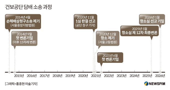 2014년부터 시작된 국민건강보험공단의 담배 소송이 12년 만에 막을 내릴 예정이다. 건보공단은 오는 15일 담배 회사 KT&G, 한국필립모리스, BAT코리아 및 제조사를 상대로 한 항소심 선고를 앞두고 있다. <뉴스핌>은 12년 간의 담배 소송의 역사와 쟁점을 짚어본다.