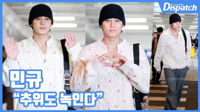 이날 민규는 꽃자수가 포인트인 아이보리 니트에 크로스백을 매치해 깔끔하면서도 화사한 공항패션을 완성했다.