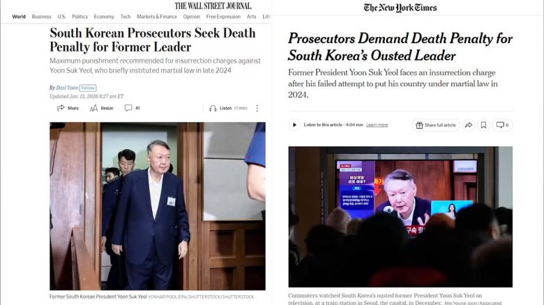 특검이 내란 우두머리 혐의를 받는 윤석열 전 대통령에게 사형을 구형하면서 주요 외신들도 관련 소식을 긴급 타전했습니다.