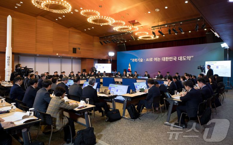 (서울=뉴스1) = 14일 오전 서울 중구 서울중앙우체국에서 열린 '우주항공청, 과학기술원, 정보통신기술분야 업무보고' 에서 배경훈 부총리 겸 과학기술정보통신부 장관의 발언이 'KTV' 에서 생중계 되고 있다. (과학기술정보통신부 제공. 재판매 및 DB 금지) 2026.1.14/뉴스1