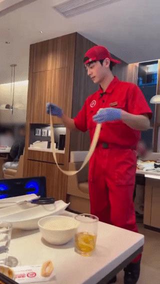 14일 온라인 커뮤니티와 소셜네트워크서비스(SNS) 상에는 화려한 몸 놀림으로 밀가루 반죽을 길게 늘어뜨리는 훠궈 직원의 영상이 공유되고 있다.