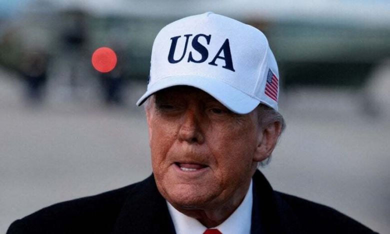도널드 트럼프 미국 대통령이 13일(현지시각) 미시간주 디트로이트 방문을 마치고 메릴랜드 앤드루스 합동기지에 도착한 뒤 기자들과 이야기하고 있다. 프린스조지스/로이터 연합뉴스