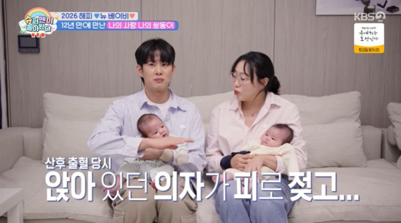 (엑스포츠뉴스 김지영 기자) 코미디언 손민수·임라라 부부가 쌍둥이 출산 이후 겪었던 아찔한 산후 출혈 비화를 고백했다.