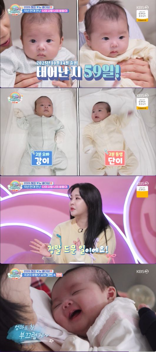 "신생아가 이렇게 예쁘다고?"…임라라♥손민수, 역대급 미모 59일 차 쌍둥이 공개 ('슈돌') [순간포착]