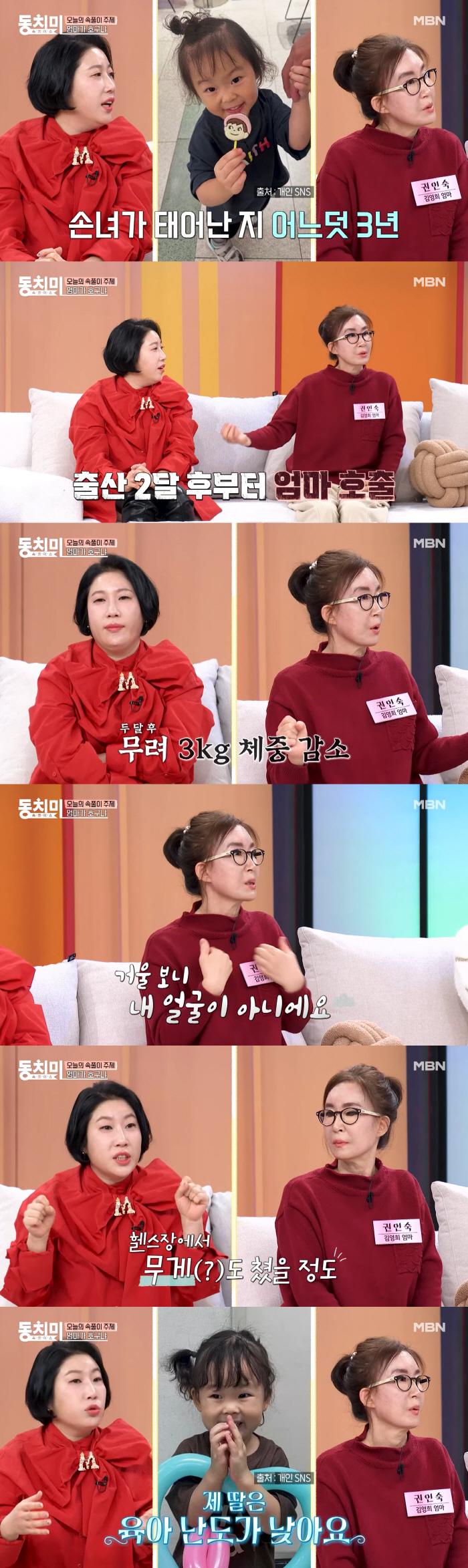 또 "두 달 후 3kg 가 빠지더라. 거울을 보니 내 얼굴이 아니어서 화가 더 났다. 그때부터 손녀를 돌본 게 4년째"라고 덧붙였다.