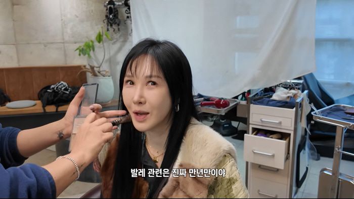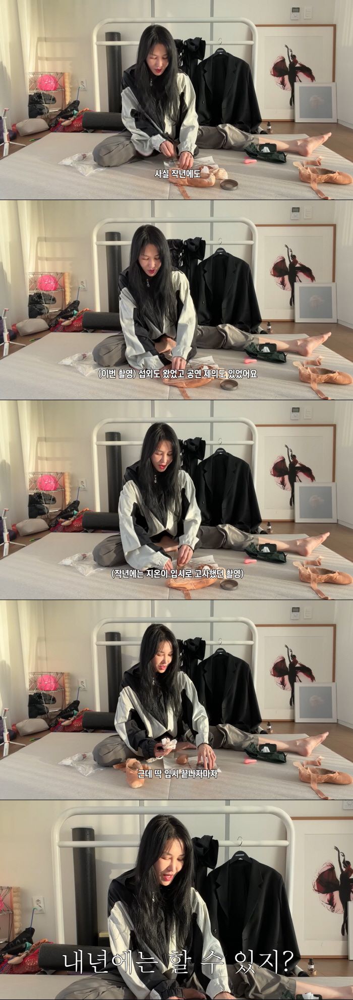 이날 윤혜진은 "오랜만에 발레 관련 촬영이 있다"며 촬영을 앞두고 관리 모드에 돌입했다. 그는 간단한 발레 동작으로 몸을 푼 뒤 의상 준비에 나섰고, 촬영에 필요한 토슈즈를 손질하며 비하인드를 전했다.