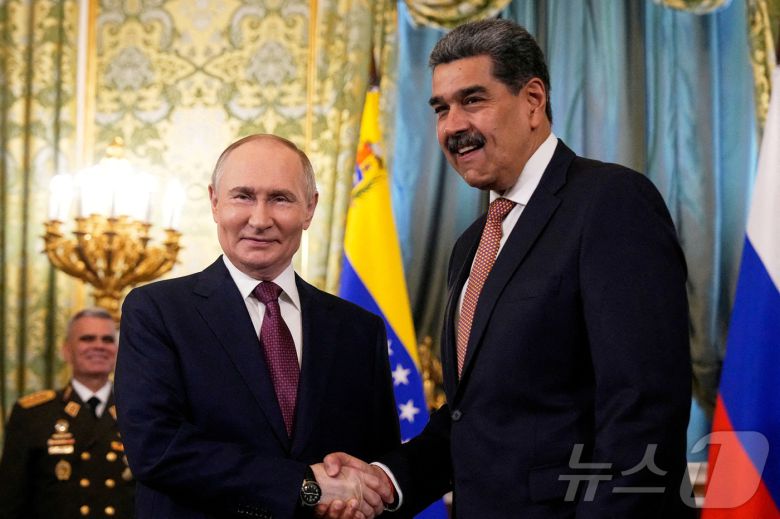 모스크바에서 회담하는 블라디미르 푸틴 러시아 대통령(왼쪽)과 니콜라스 마두로 베네수엘라 대통령. 2025.05.07 ⓒ 로이터=뉴스1 ⓒ News1 이지예 객원기자 |