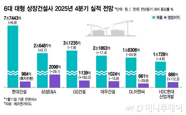 6대 대형 상장건설사 2025년 4분기 실적 전망/그래픽=김지영