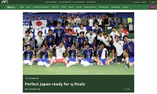 AFC는 공식 홈페이지를 통해 "일본은 방심하는 기색 없이 카타르전을 치렀다"라고 감탄했다.