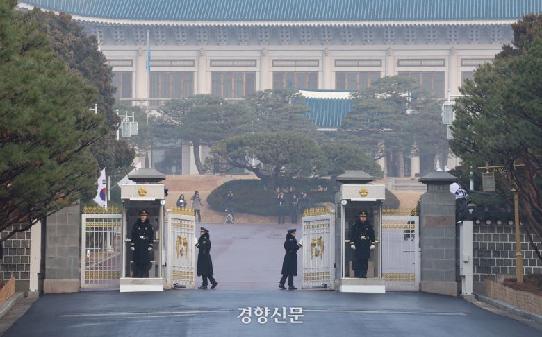 이재명 대통령 차량 행렬이 지난달 29일 청와대로 들어가기 전 청와대 정문이 열리고 있다. 김창길 기자 |