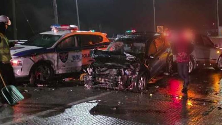 경찰은 이른바 '블랙 아이스' 도로 위 살얼음 때문에 SUV가 중앙분리대를 들이받은 뒤, 차량 5대가 잇따라 미끄러진 거로 보고 있습니다.