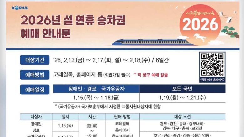 예매 대상 기간은 다음 달 13일부터 18일까지 6일간으로, 오전 9시부터 오후 3시까지 이틀간 코레일톡 앱이나 코레일 홈페이지를 통해 예매할 수 있습니다.